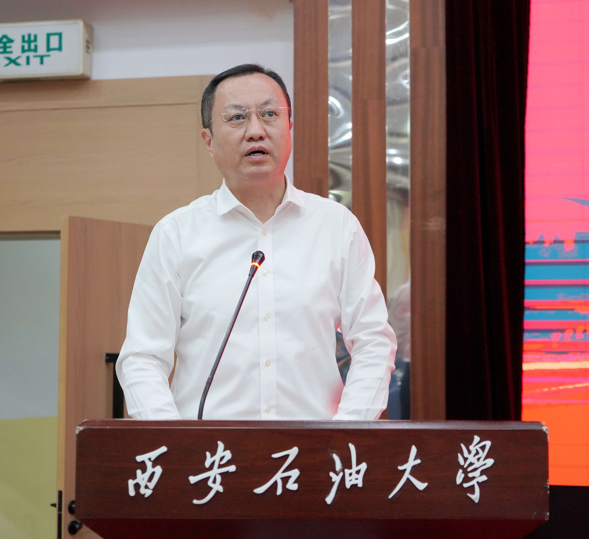 开幕式上,王进富代表学校致欢迎辞。他向莅临论坛的各位专家学者表示热烈欢迎和崇高敬意。他谈到,西安石油大学长期扎根西部,坚持服务鄂尔多斯盆地,始终与国家能源战略同频共振,在非常规油气领域已构建起从基础理论研究到关键技术研发、工程应用服务的完整学科链和科研创新体系。他指出,非常规油气资源已成为保障国家能源安全的战略新支点,在“双碳”目标引领的能源转型关键期,深层页岩气高效开发、超低渗储层经济有效改造等“卡脖子”难题亟待突破,人工智能、大数据等新一代信息技术对传统勘探开发模式的革新刻不容缓,本次论坛的举办,旨在汇聚行业智慧,以前沿技术和创新思维共同探索破解之道,为中国能源事业注入西石大力量。