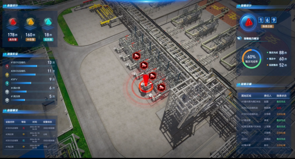 智能安全监管平台在管网、天然气场站、LNG接收站等领域有着广泛且深入的应用。通过综合运用物联网、大数据、人工智能等先进技术构建的现代化安全管理系统。对设备运行状态、人员操作行为、环境参数等进行全方位实时监测,利用大数据分析技术及时发现潜在的安全隐患和异常情况。一旦出现异常,系统会迅速发出预警,同时借助人工智能算法为管理人员提供精准的决策支持,辅助其制定科学合理的应对措施。该平台还具备远程控制、安全培训、风险评估等功能,有效提升场站安全监管的效率和智能化水平,为场站的安全稳定运行保驾护航。有效降低重大安全风险,为管网、天然气场站、LNG接收站等的安全生产筑牢智能化防线。