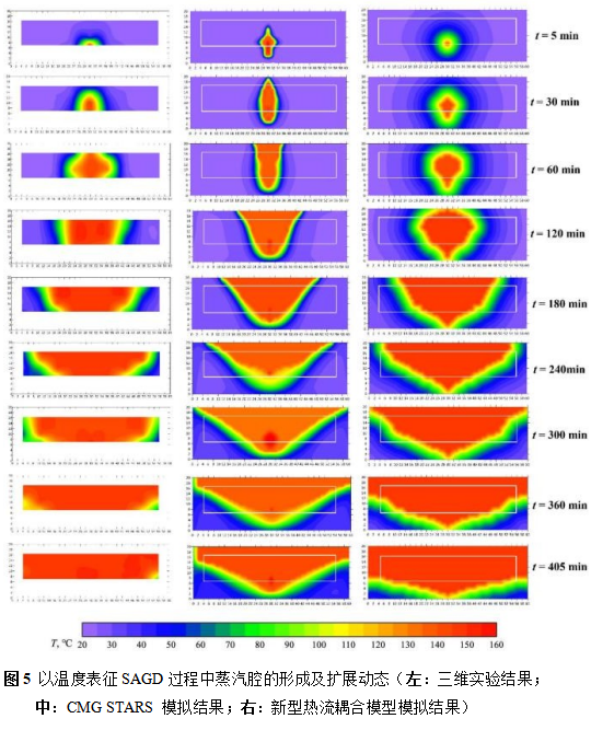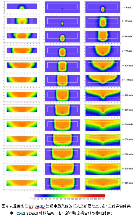 多场耦合模型可精准预测蒸汽腔扩展边界与溶剂传质效率,为SAGD/ES-SAGD注采参数优化、汽窜防治提供决策支持。该成果已在加拿大帝国石油公司所属Cold Lake油田ES-SAGD先导试验中验证其工程实用性,并推广至加拿大Athabasca和Cold Lake油田的1个ES-SAGD和2个H-VAPEX项目。